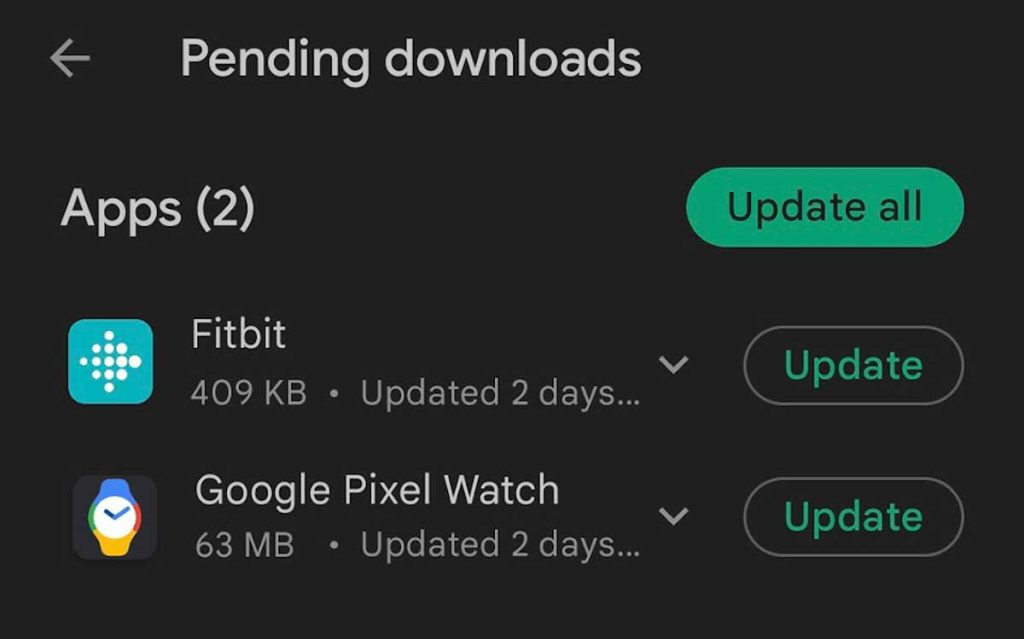 - Tap Update all to update the Fitbit app and any other apps needing an update, or tap the Fitbit app individually to update it.
