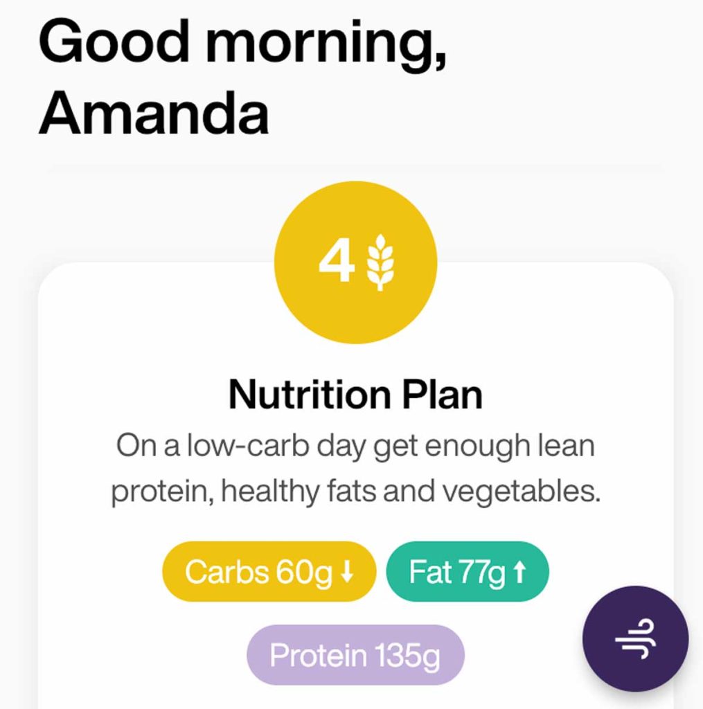 The nutrition plan recommendations are tailored to meet the overall long-term goal you stated when setting up the app to lose weight, improve performance, or gain better metabolic health.