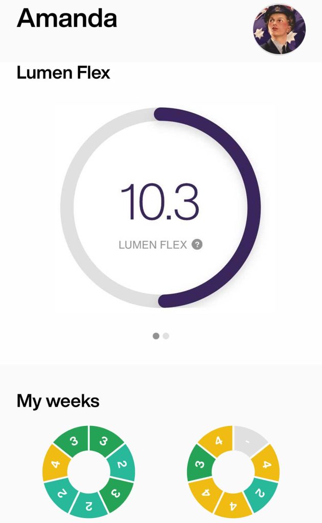 After using the Lumen consistently for two weeks, you get a personalized Lumen FlexScore somewhere between 0 and 21 which shows you how flexible your metabolism is.