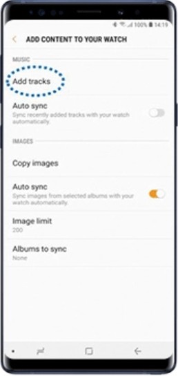 - Choose ‘Add Content to your watch.’ Tap ‘Add tracks’ or ‘Auto Sync’ to sync up the music.
