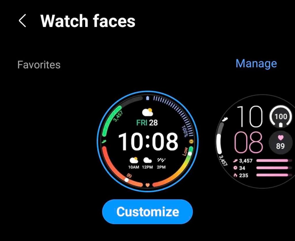 Personalize your watch by choosing from thousands of different watch faces. You can download and install new watch faces using the Galaxy Wearable app on your connected phone or directly on your watch.