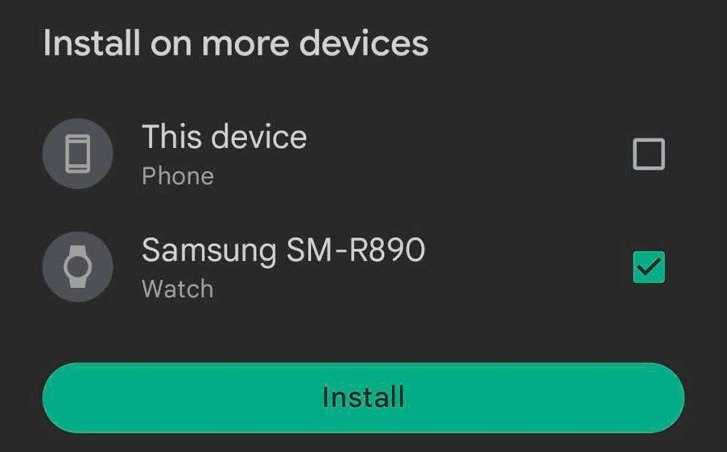 - Checkmark your Samsung Watch (and any other devices you want the app installed on.)