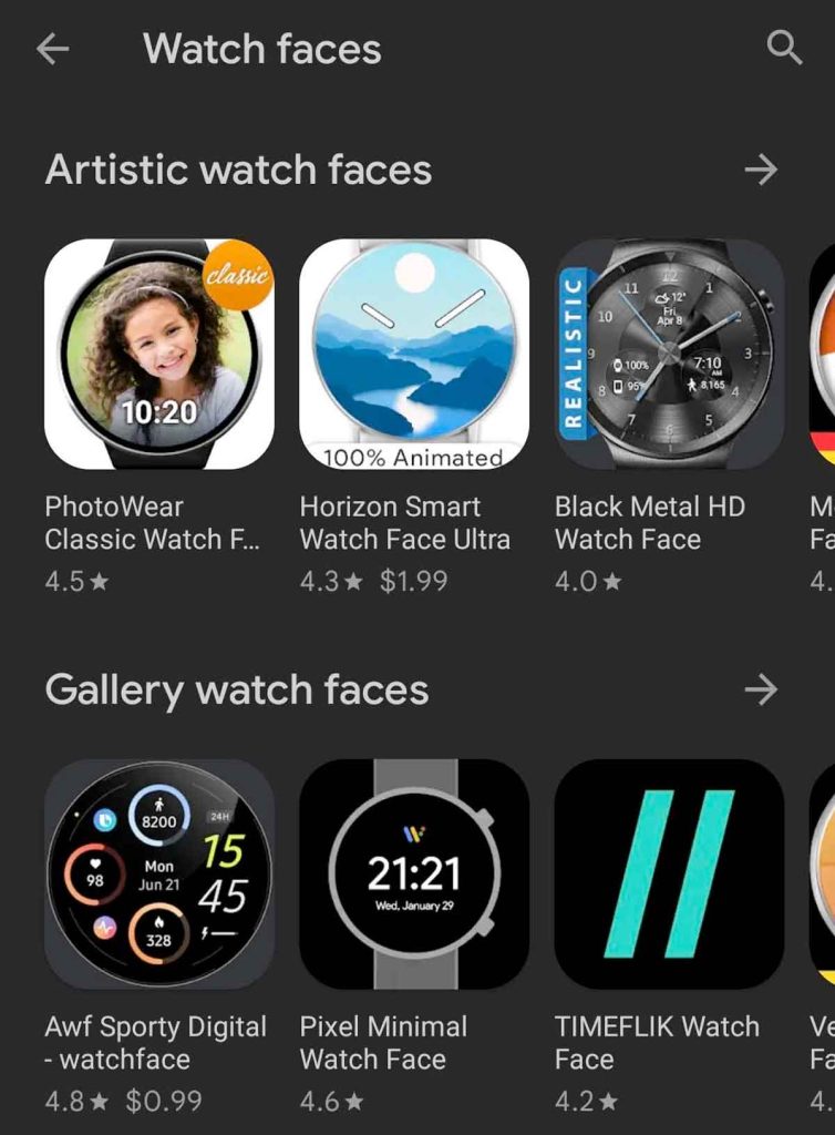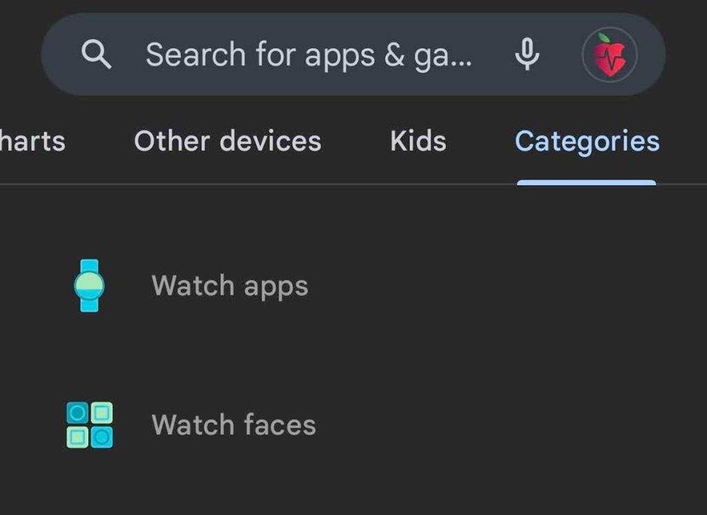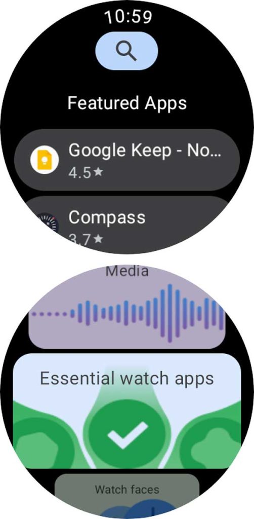 - Scroll down to see top app categories like Featured Apps, Now trending, and categories like Healthy mind & body, Watch faces, Essential watch apps, and more.