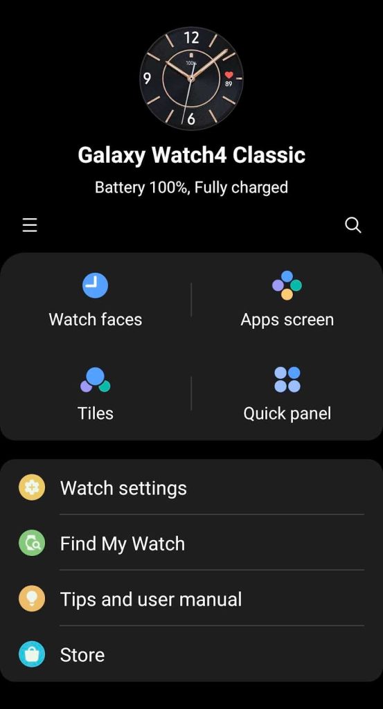 - For the Wear OS 3 models like the Galaxy Watch 4 and 5, another menu appears.