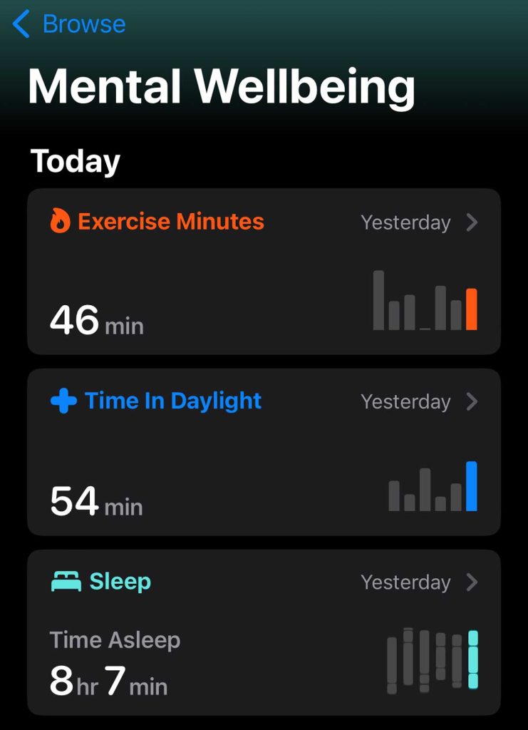 - Open the Health app > Browse > Mental Wellbeing > Time in Daylight.