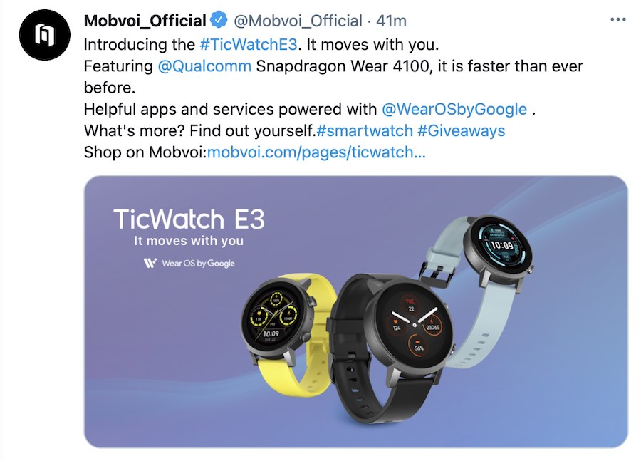 Mobvoi, makers of TicWatch smartwatches just announced their newest product. The TicWatch E3 based on the 4100 Qualcomm wearable chipset is here.
