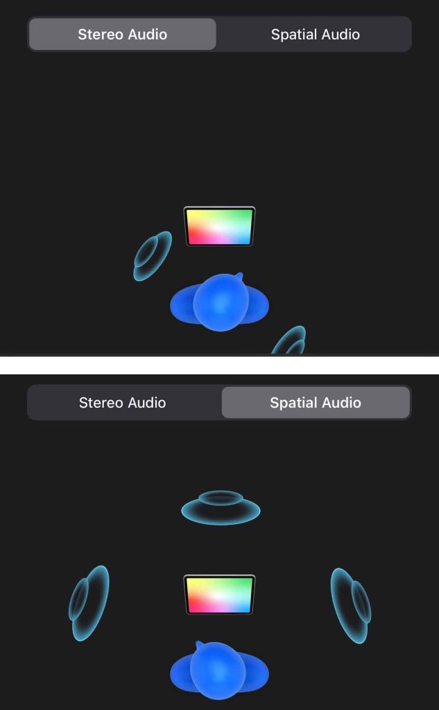 Basically, Spatialize Stereo simulates Spatial Audio for non-Dolby content by using your supported device’s AI and machine learning to transform stereo audio tracks into surround sound. It’s simulated Spatial Audio.