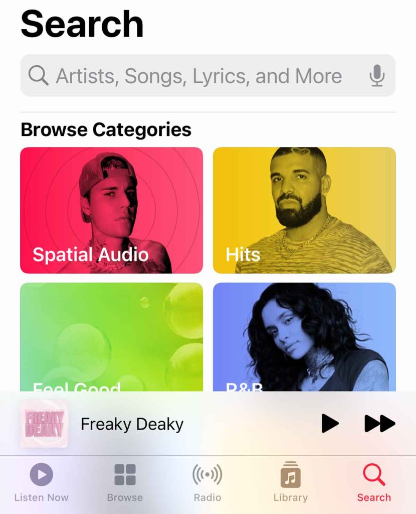 You can tell which songs use spatial audio in Apple Music by looking for the Dolby Atmos badge.