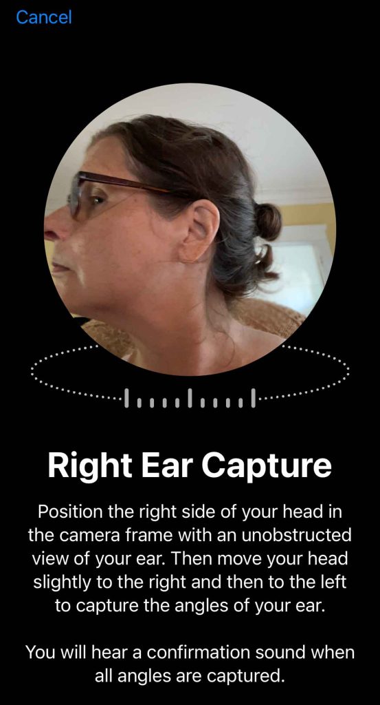 - Continue following the on-screen steps to capture your right and left ears. Move your head to the left and right slowly.