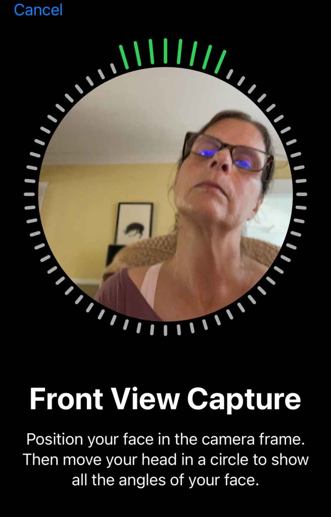 - Keep your iPhone 10-20 inches away from your face for these setup steps, and slowly move your head in a circle.