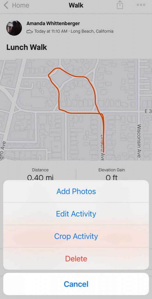 - You can also crop your activity or delete it in this menu.