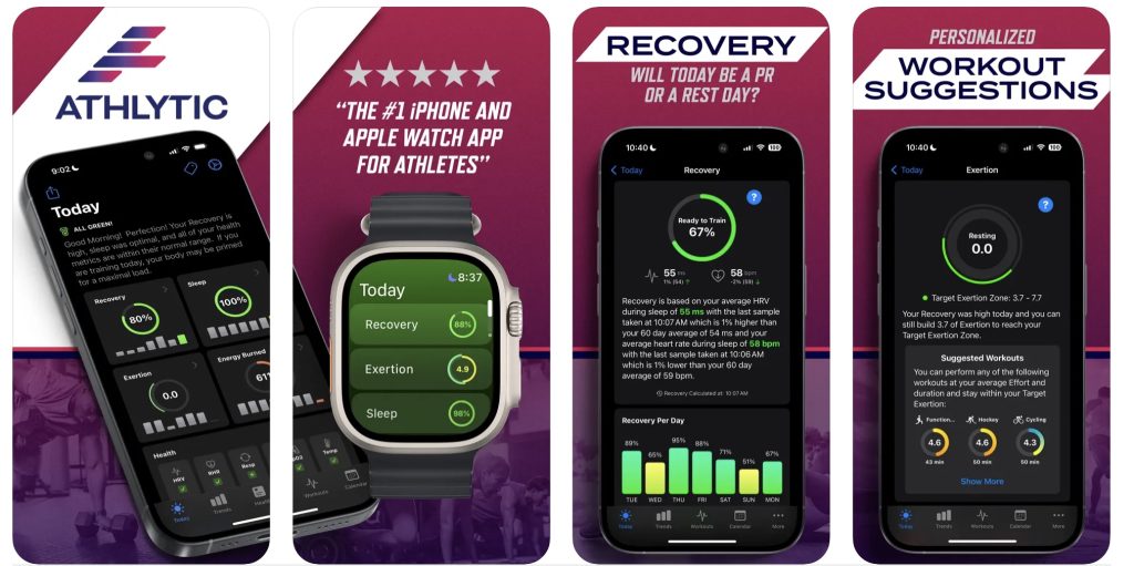 Athlytic is an app that tracks various data points to give you actionable insights. By analyzing your heart rate variability, resting heart rate, blood oxygen levels, respiratory rate, and wrist temperature, this app can determine your optimal recovery and exertion levels.