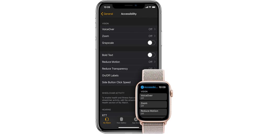 Some of the Accessibility options available for Apple Watch include increasing text size or bolding it so it’s easier to read, a zoom function to magnify a portion of the screen using just a two-finger double tap, and a VoiceOver feature that’s a built-in screen reader.