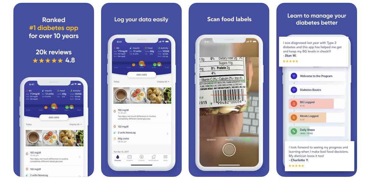 While many apps provide meal logging, carb tracking, and management of blood sugar levels, the BlueStar app from Welldoc happens to be a top-of-the-line Diabetes management app that is FDA approved.