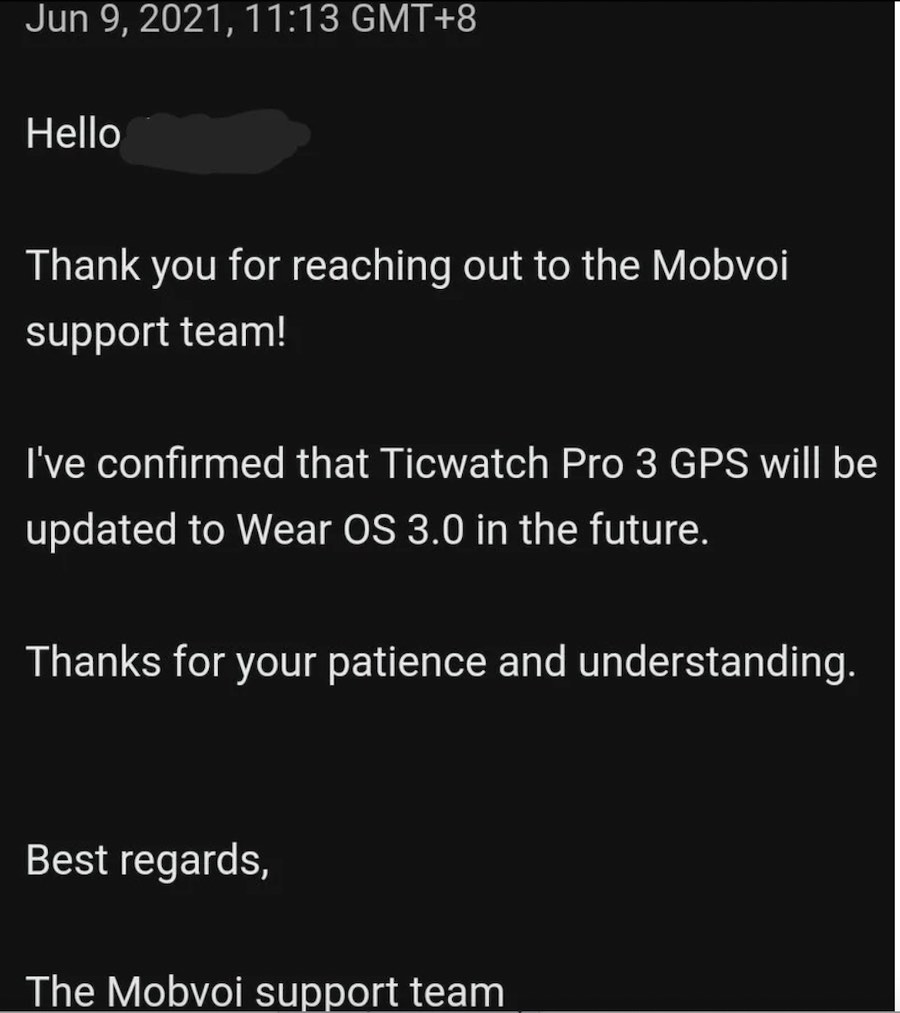 This led to new inquiries, and the Mobvoi support team confirmed to a Reddit user that the existing Ticwatch 3 smartwatch would support the new Wear 3.0.