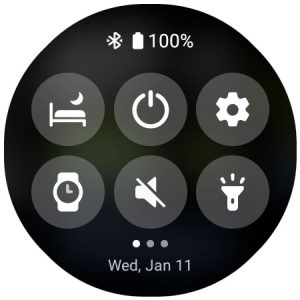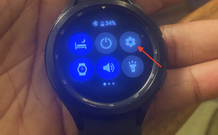 - Swipe down on your Galaxy Watch home screen and tap on the Settings icon or open the Settings app.