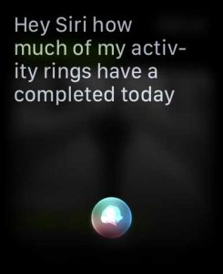 Siri can help you keep track of your Apple Activity goals when you ask this question. After you ask this question, Siri opens the Activity app and displays your progress so far.