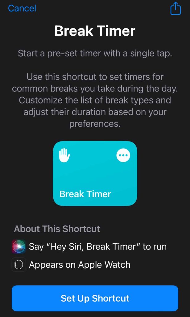 - To add the shortcut to your watch, tap Set Up Shortcut