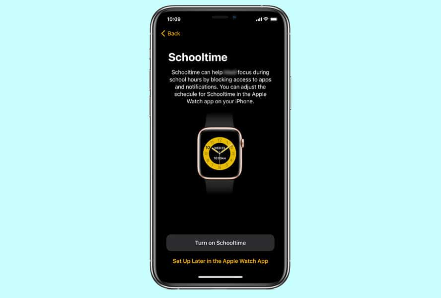 - Schooltime helps you limit your child’s access to many of the Apple Watch features during regular weekday school hours.