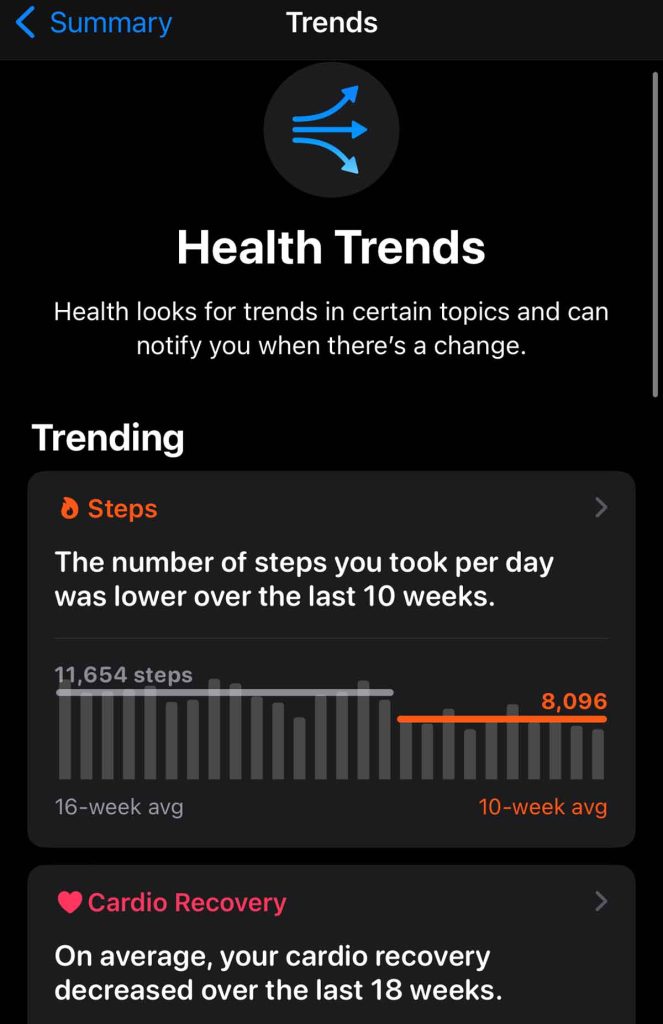 Tapping here brings you to a list of essential set-up items that require your attention. You can turn on, set up, or turn off various health features inside the Health Checklist.